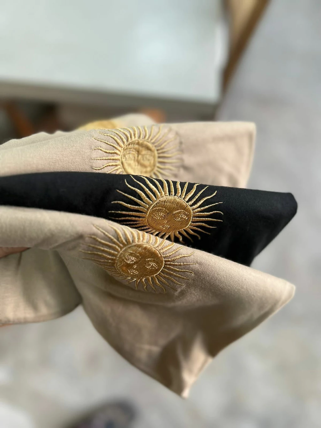 IMPORTANTE: LA IMAGEN ES UNA MUESTRA A MODO DE REFERENCIA. EL MODELO ES CON CUELLO REDONDO, HOLGADO MEDIO. CON SOL BORDADO ADELANTE (AL CENTRO O AL COSTADO) NO ES UNA ESTAMPA. TALLE UNICO