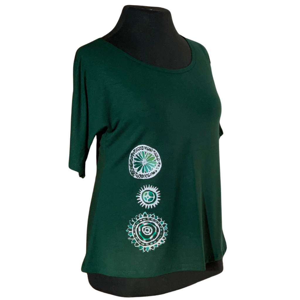 Estan estampados con serigrafia y pintados a mano con stencil y en algunos casos teñidas con batik.