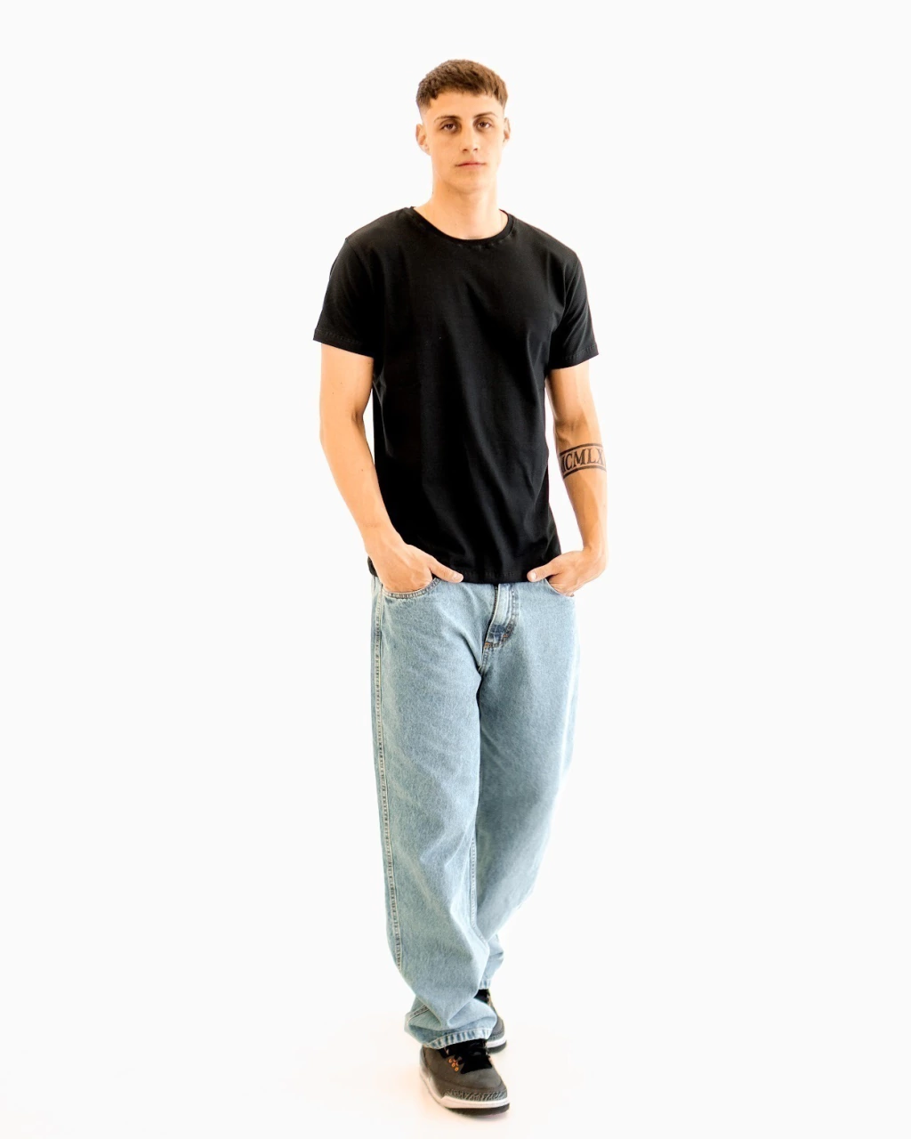 El modelo esta usando L y mide 1,85.