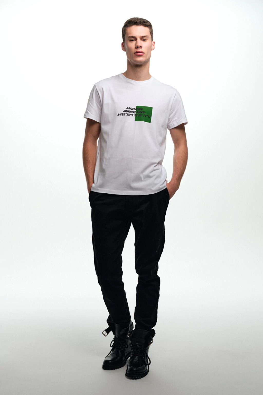 Remera manga corta de algodón con estampa en el delanteroComposición: 100% algodónSMLXLContorno de pecho110 cm112 cm114 cm116 cmAncho de hombro13 cm14 cm15 cm16 cmLargo total68 cm69 cm70 cm71 cm