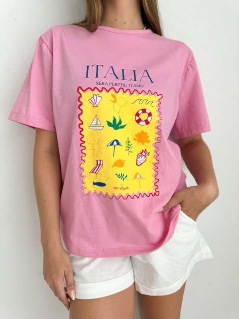 Remera de algodón con estampa al frente. Talle unico.Medidas: Hombros: 42 cm // Sisa: 53 cm // Largo: 62 cm.Todas las medidas son aproximadas y lineales con la prenda en reposo.