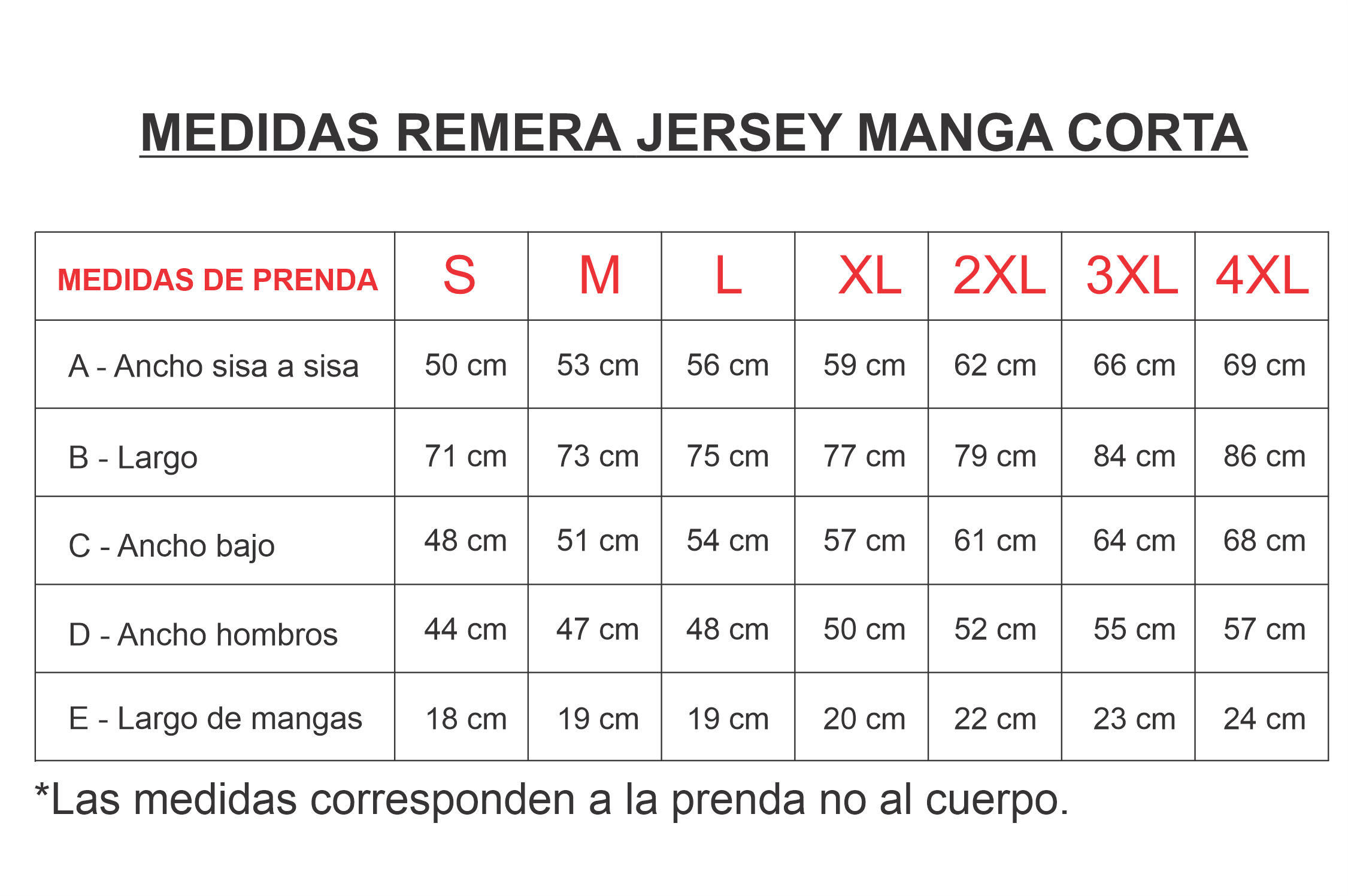 Disponible en talles S al 4XL según stock.