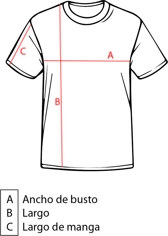 MEDIDAS: (A) ANCHO DE SISA A SISA: 55CM / (B) LARGO: 42CM / (C) LARGO DE MANGAS: 19CM