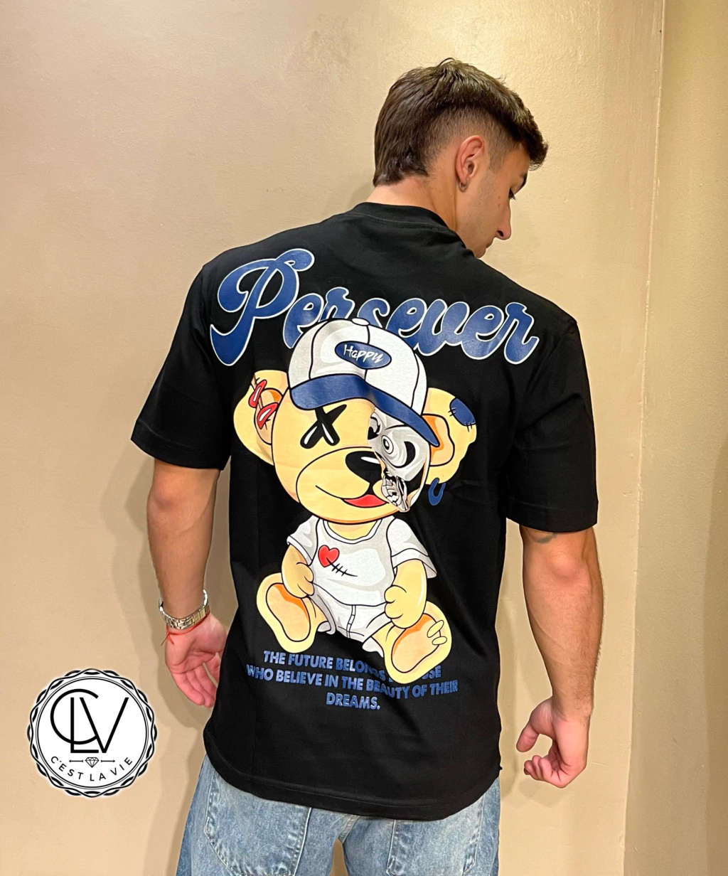 Remera de algodon color negro. Corte Oversize. Frente con pequeña estampa en el pecho y en la espalda estampa grande!