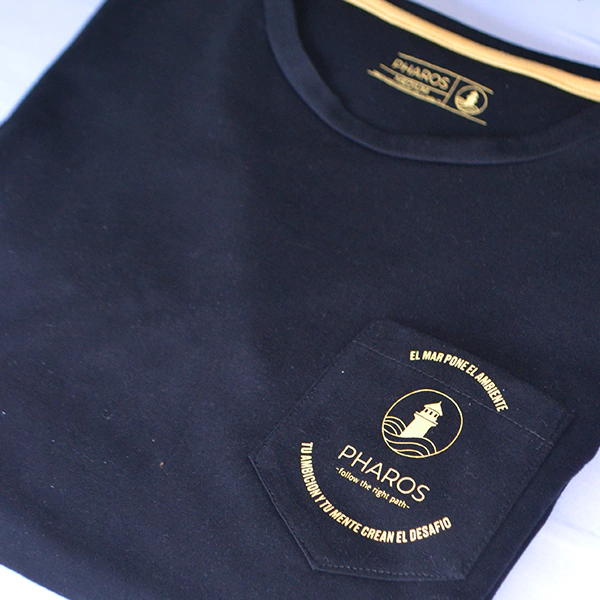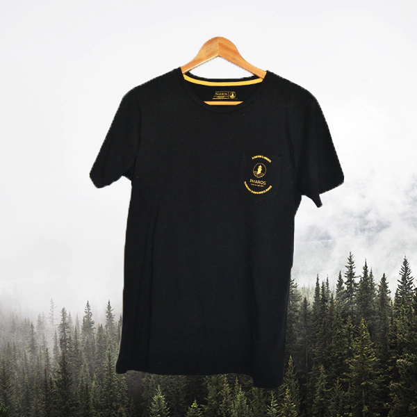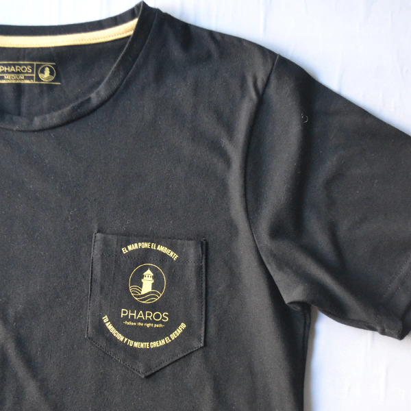 Remera de hombre elaborada con 100 % algodón fino. Color negra con estampado del Loco y frase "El mar pone el ambiente. Tu Ambición y mente crean el desafío" reflejando la filosofia de la marca en cerigrafía. Dorso negro liso.