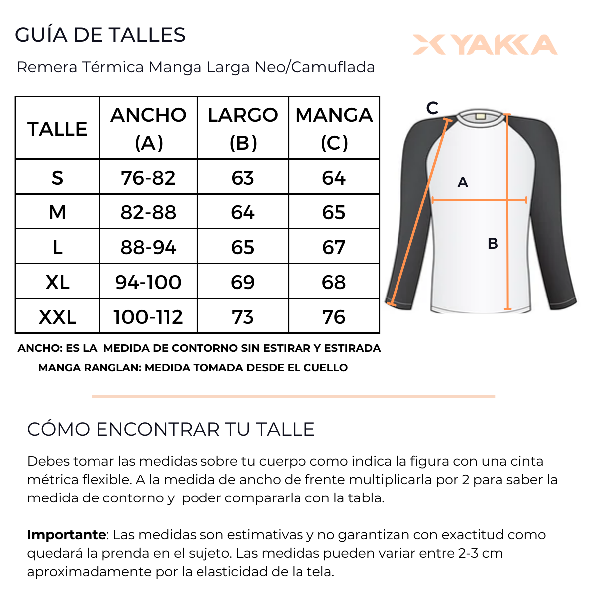 Remera térmica manga larga confeccionada en microfibra antitranspirante con lycra que ayuda a mantener la temperatura corporal en climas de frío extremo. Llévala debajo de tu ropa para mantener la temperatura y sentirte súper cómodo.