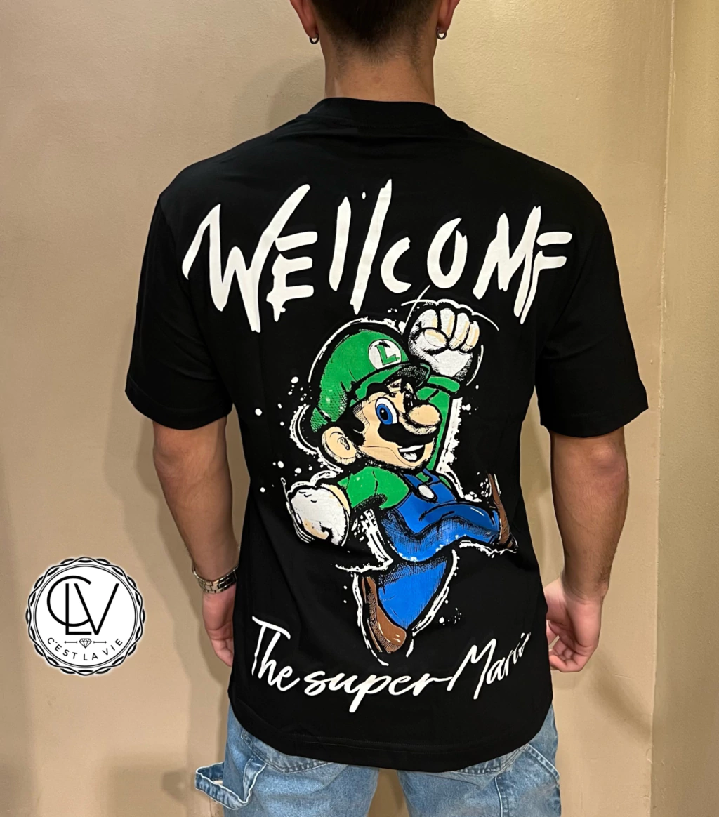 Remera de algodón Negra.Corte Oversize!Frente Con Pequeña Estampa en el Pecho y La espalda con estampa en Grande , Muy Original,Supper Cómoda y Fachera!!