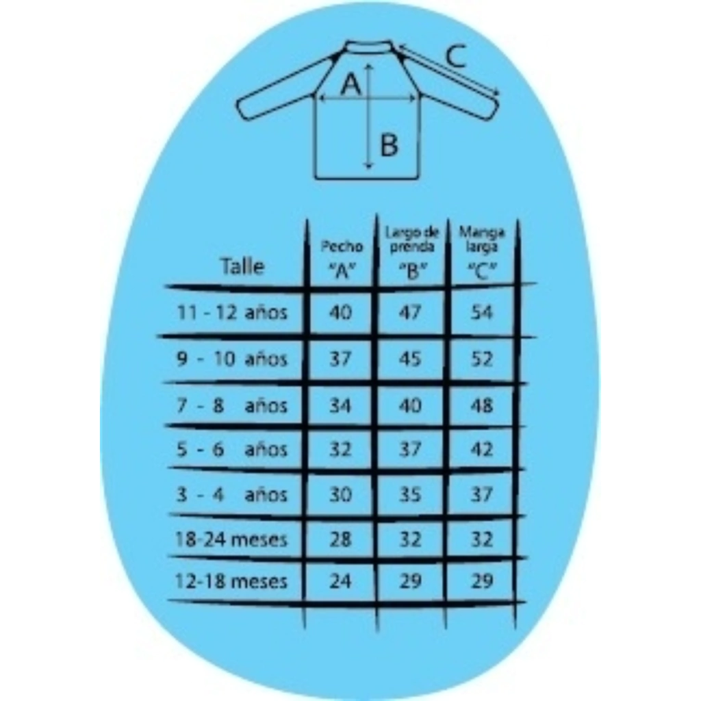 Descripción del productoManga LargaTalles:12/18 meses18/24 meses3/4 años5/6 años7/8 años9/10 años11/12 añosREMERAS DE PROTECCION SOLARTodas nuestras remeras poseen UPF+50, significa que la prenda permite que solo pase la 1/50 de la radiacion UV que cae sobre la superficie de la prenda, osea que    bloquea el 98 % de la radiacion solar.Hay una serie de factores que afectan a nivel de proteccion ultravioleta;Tejido, cuanto mas ajustado mejor, color oscuro mayor proteccion, peso o tambien llamado factor de cobertura, y es muy importante realizar un lavado luego de cada uso.CUIDADO DE LAS PRENDASLavar a mano o con lavado sueva a máquinaLavar con agua fríaNo guardar la prenda húmedaSecar extendida para evitar contaminación de coloresAlgunos colores flúo puede migrar el colorNo planchar