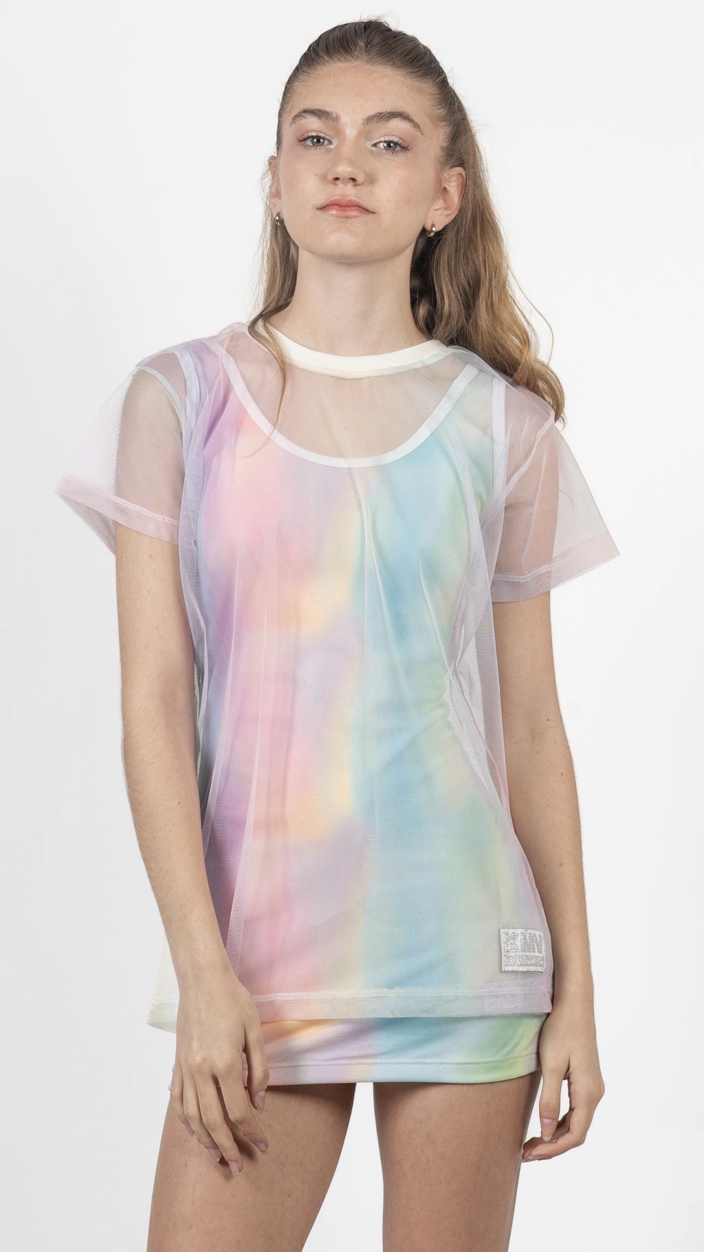 Confeccionada en tul transparente con tonos pasel difuminados, esta prenda es el básico infaltable que aporta frescura y estilo a cualquier outfit. Su cuello de algodón le da un toque de comodidad y terminación impecable.