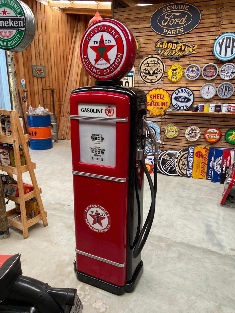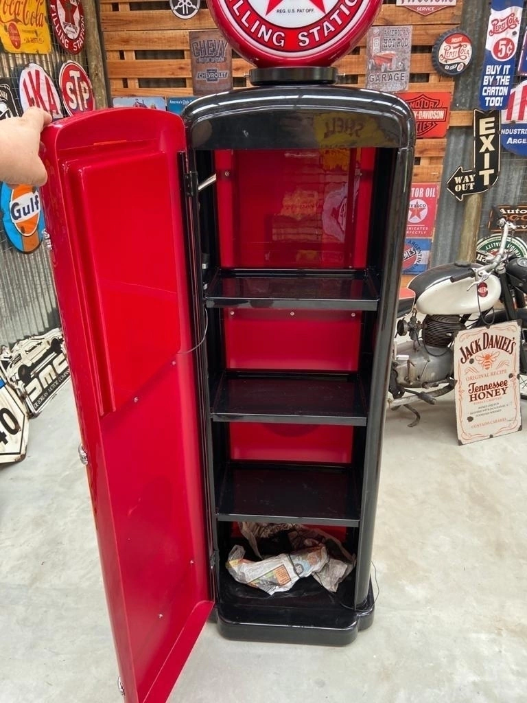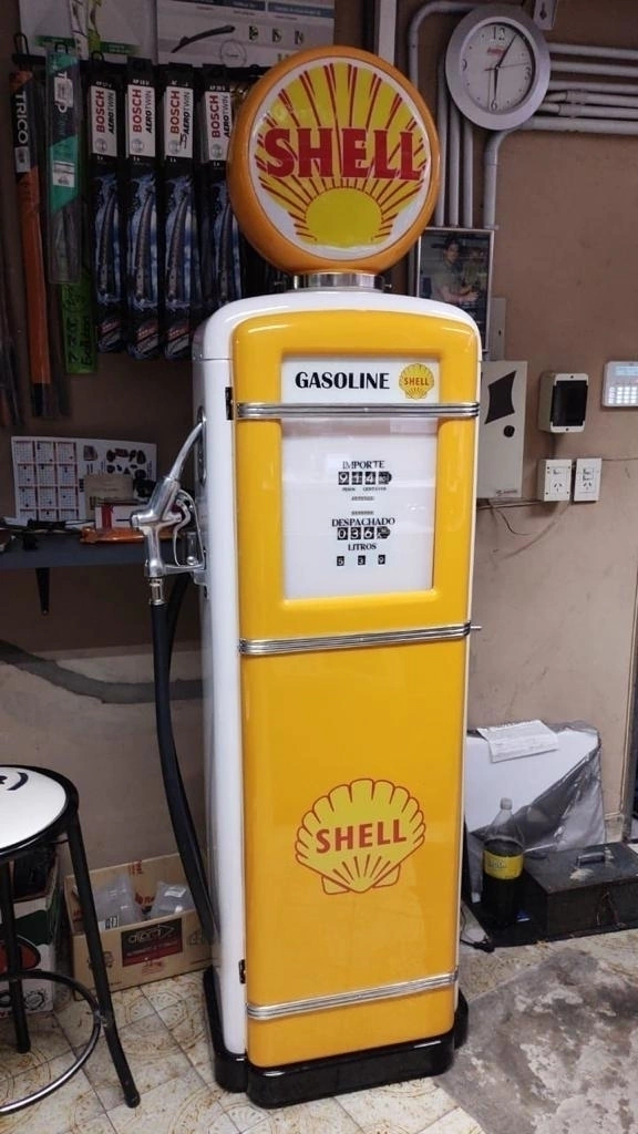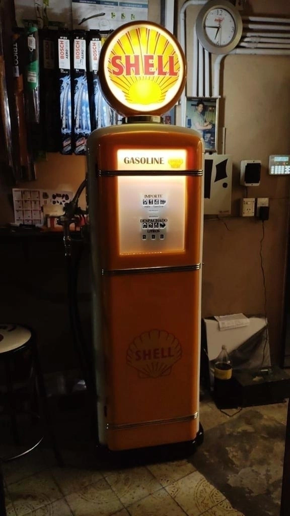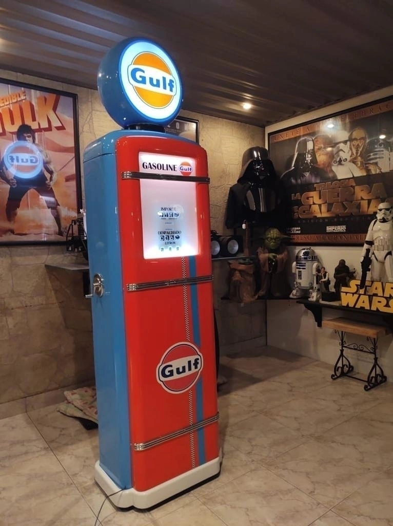 Entrega en 40 dias aprxIncreible replica de surtidor, en su interior una amplia estanteria y una estructura de hierro que le da peso y rigidez a su exterior de pet termoformado, pico y detalles de alumino fundido y pulido, todo iluminado con led 12v.-consulta por precio en efectivo