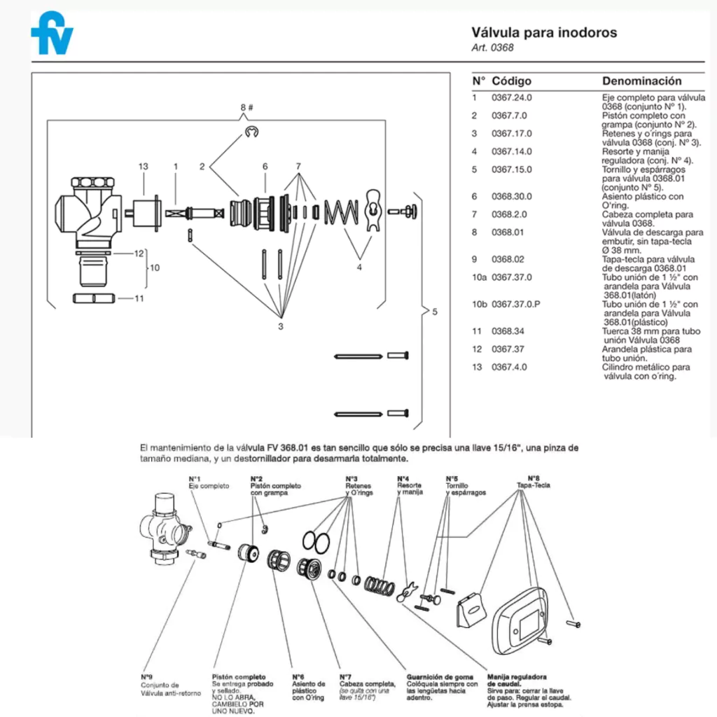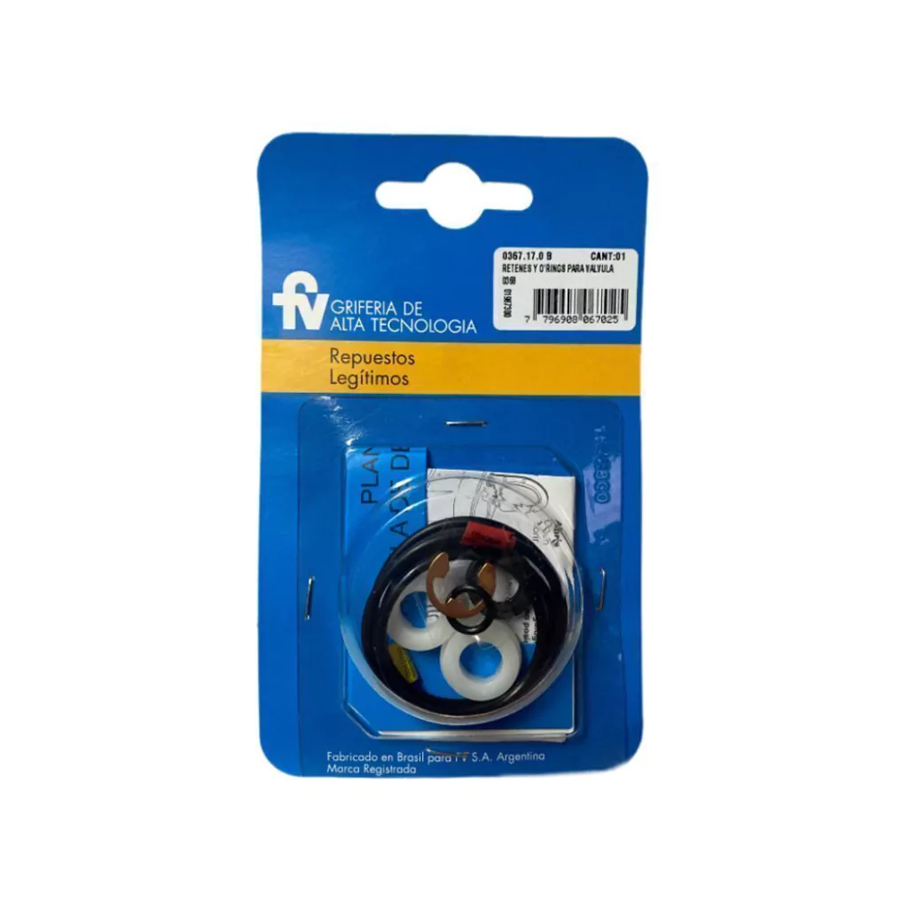 - Marca: FV.Características- Modelo: 0367.17.0.- Juego Completo de Retenes Conjunto N°3.- Repuesto para Valvula de Descarga 0368.01.- Instalacion en Valvula FV 368.01.- Compatible con Valvula de Descarga FV 368.01.- Incluye 1 Juego de Retenes completo y 1 Grampa.- Blister Original de Fabrica.- Repuesto Legitimo FV.- Material Goma.- Color Negro y Blanco.- Garantía de Fabrica 5 años.