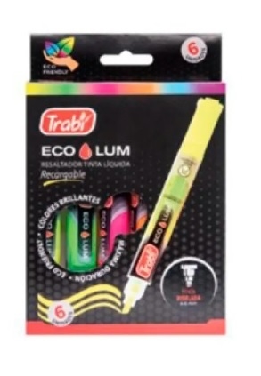 6 colores disponiblesResaltador recargable de tinta liquidaPunta biseladaTrazo 4-6mmTinta fluo a base de agua
