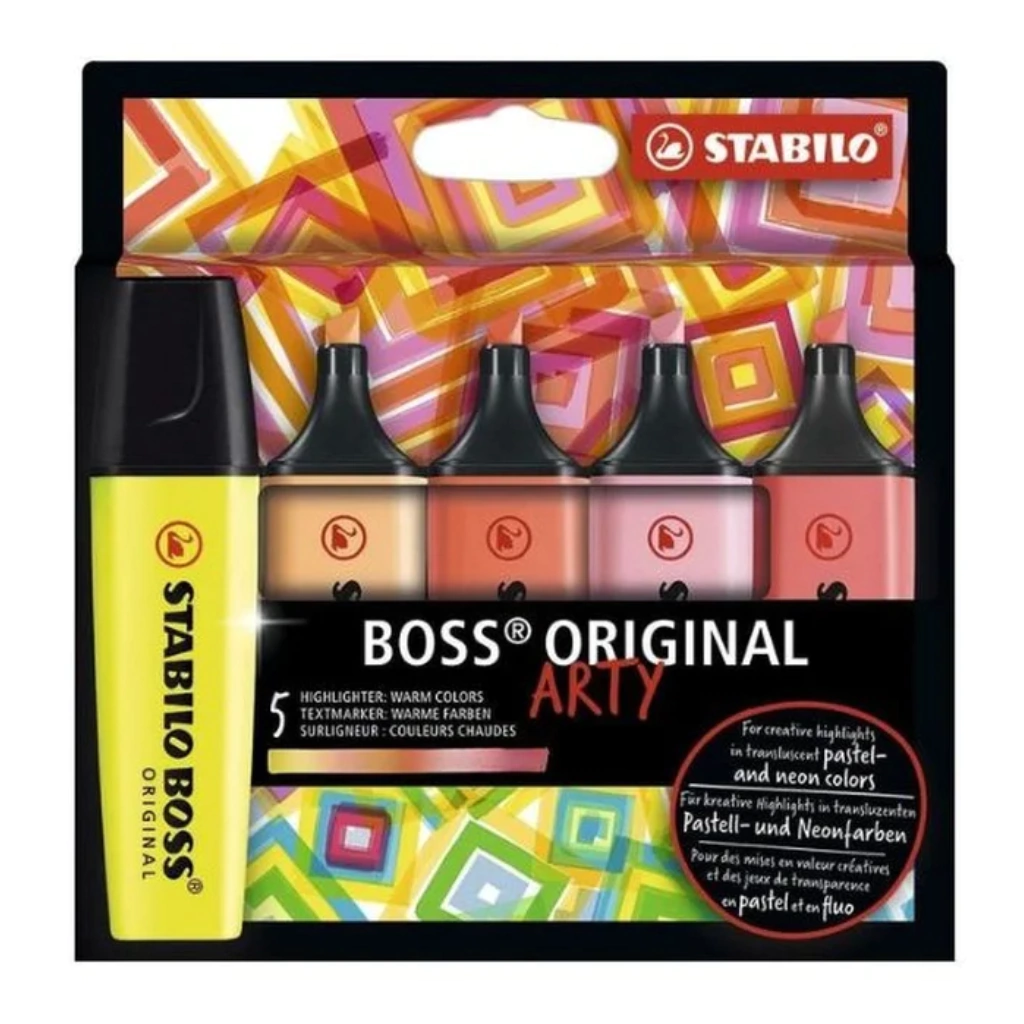 Tecnología STABILO Anti-Dry-Out: 4 horas de protección contra secado para un trabajo concentrado.Punta biselada de 2,0 mm a 5,0. Es perfecto para resaltar información importante en el texto.Tinta a base de agua.Cuerpo de agarre más confortable.Tinta alemana.Disponible en colores fríos y cálidos.