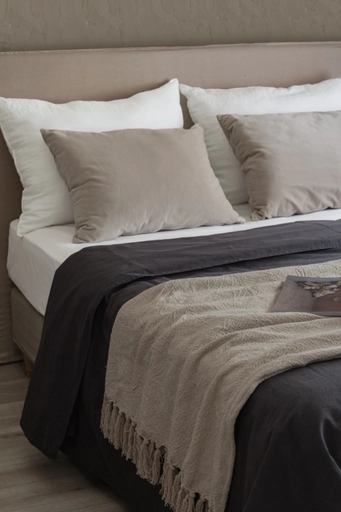 Respaldo de cama con estructura de madera de álamo revestida en espuma de alta densidad, forrada en algodón crudo, con funda desmontable de Lino Nuez, extraíble para su lavado, con terminación de pespunte perimetral.Cuenta con Patas de Madera, lo que le otorga mayor estabilidad y diseño, y evita que el género roce con el suelo, con su consecuente deterioro.