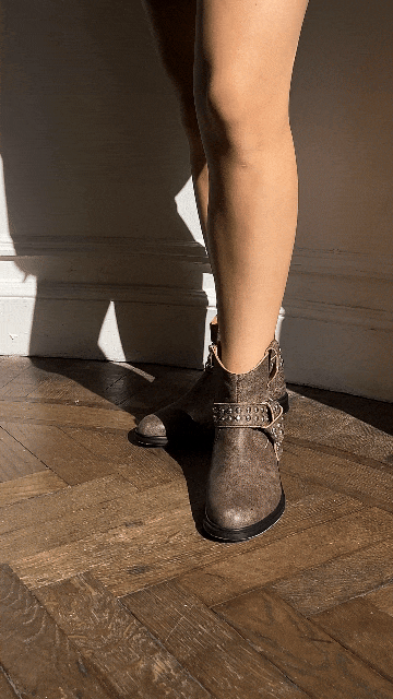 *Botas de caña corta con cierre lateral interno, estribo fijo con tachas y hebilla.
