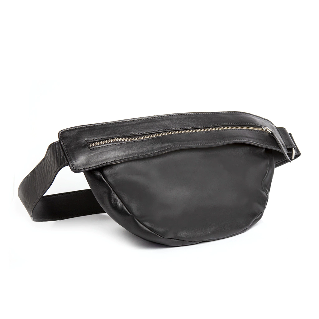 Riñonera realizada en un cuero extra suave.Tira regulable con herraje niquelado.Medidas aproximadas: 32 cm x 17 cm x 17 cm