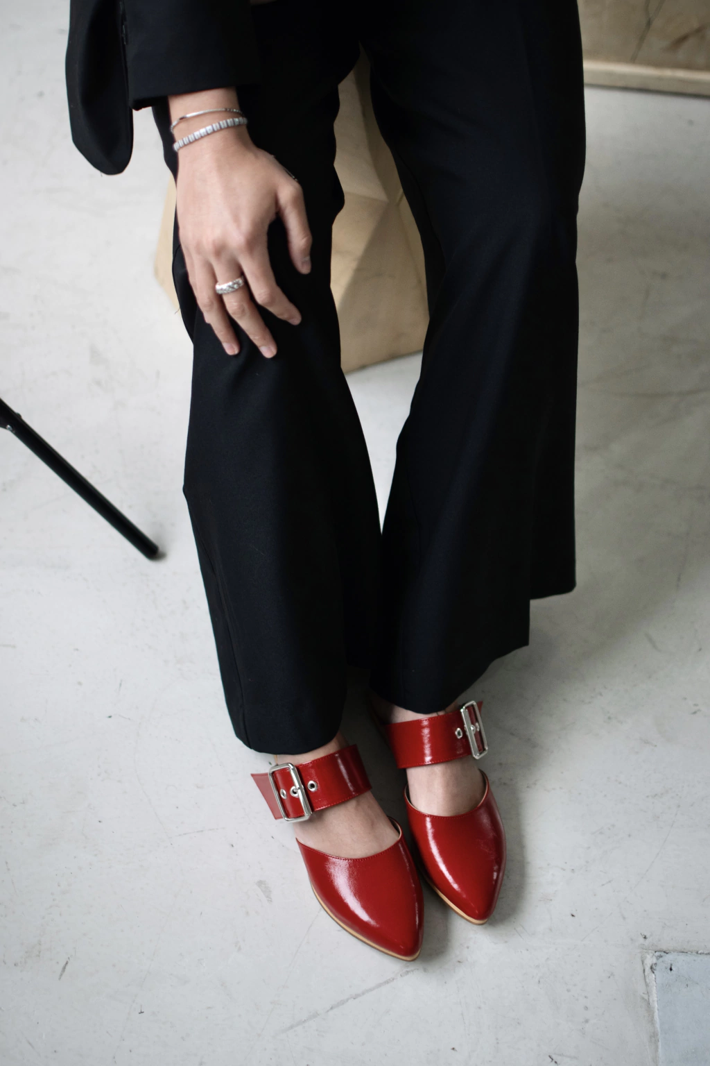 Detalle del producto:Zueco en punta con tira en el empeine de hebilla regulable. Tiene un estilo moderno y un acabado charol.Su base es de cuero flex, super duradera y cómodas. Vienen en color cherry, plateado y charol negro.Material: CueroForreria: veganMaterial base: Cuero flexAltura base: 1 CMHorma: Cumplida (si estás entre dos talles talles, elegir el más grande)·TABLA DE TALLESSi tu talle habitual no coincide con la tablate ayudamos a resolverlo >> 1132262009Talle 35 >> 23 cmTalle 36 >> 23,5 cmTalle 37 >> 24 cmTalle 38 >> 24,5 cmTalle 39 >> 25 cmTalle 40 >> 26 cm·¿CÓMO MEDIR MI PIE?1)Apoyá tu pie sobre una hoja de papel2)Contorneá con un lápiz desde tu dedo más largo hasta el talón3)Medí con una regla(La distancia que mida esa marca, es la medida de tu pie)