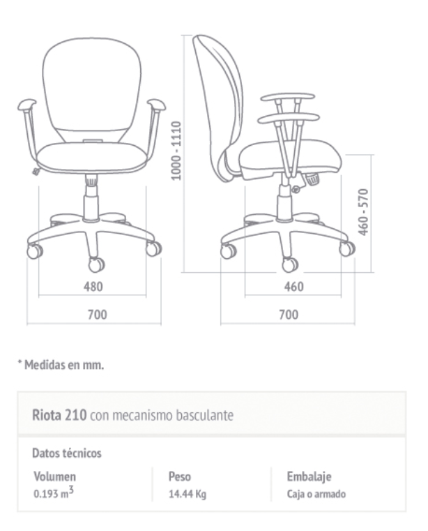 Opcionales: Apoyabrazos / Base cromada / Base con alma de acero / Ovalina / Basculante.