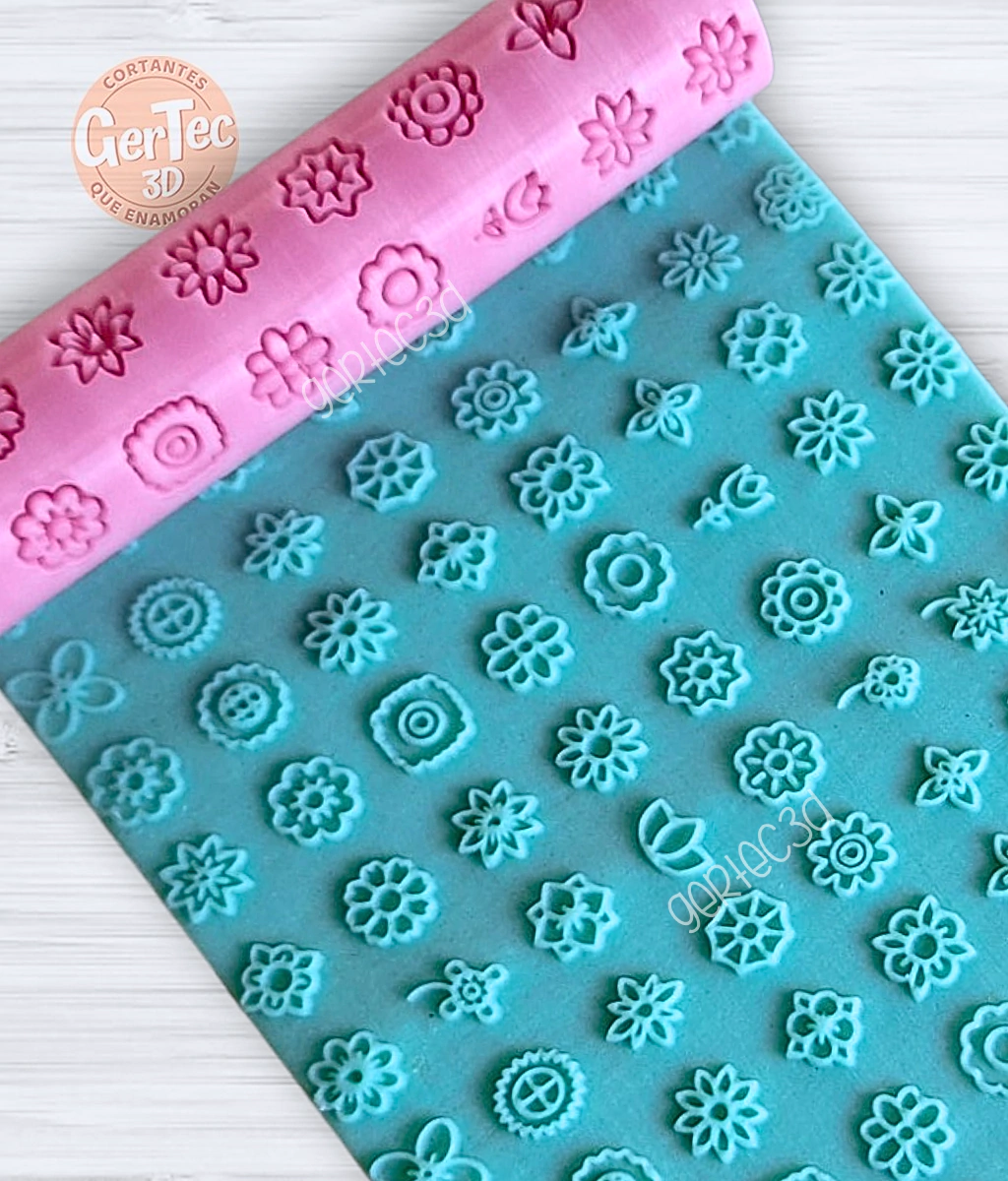 - [SKU 158-A146] -* RODILLOS TEXTURADORES PARA MASA - MINI FLORES *- Cortantes para galletitas, fondant, pasta de azúcar, cualquier tipo de masas comestibles, porcelana fría o plastilina.- Medidas: Ø30 mm. X 14 cm. de alto.- Las florcitas tienen una medida aprox. de 1,2 cm.- Material: Plástico PLA, NO TOXICO!- Color sujeto a disponibilidad actual de materia prima.ATENCIÓN:Se deben lavar a mano utilizando agua fría o tibia. No aptos para lavavajillas. No exponer a altas temperaturas. Secar bien antes de guardar.