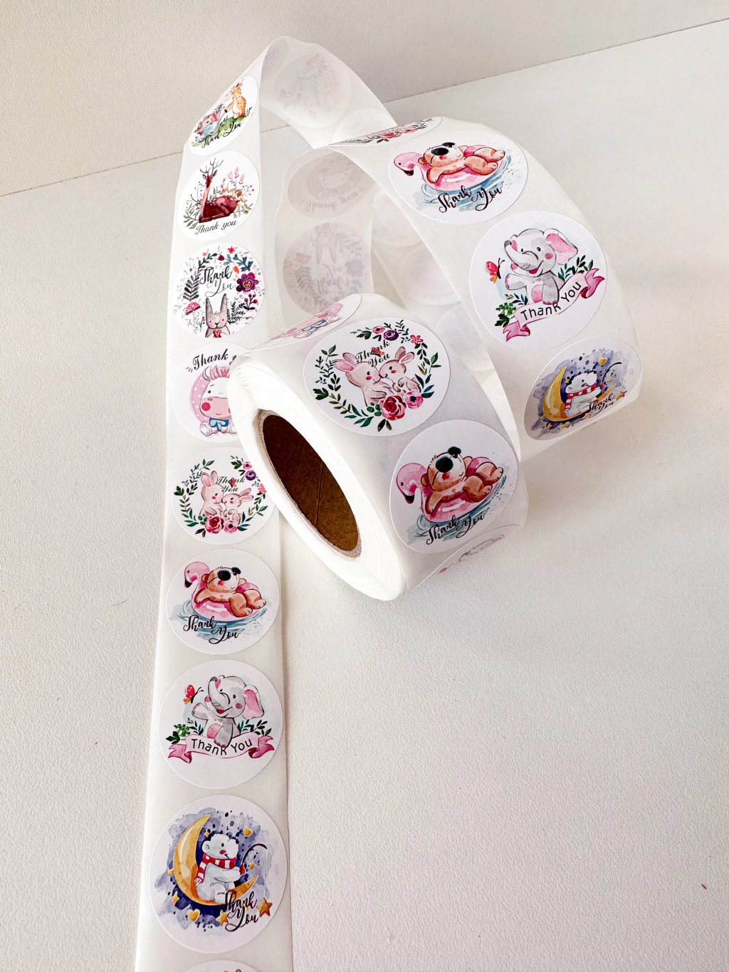 Rollo de stickers. El rollo contiene aproximadamente 500 stickers de 2,5 cms de diámetro.
