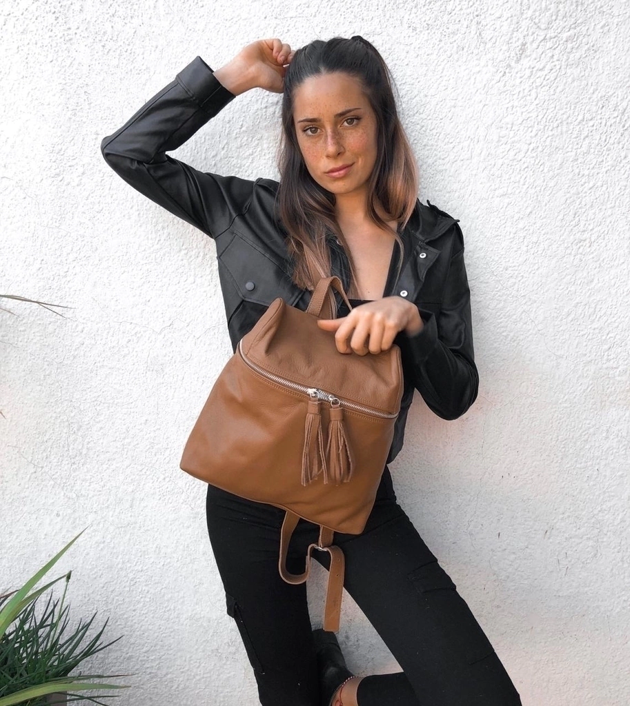 Confeccionada en cuero genuino, esta mochila es la compañera ideal para todos los días.