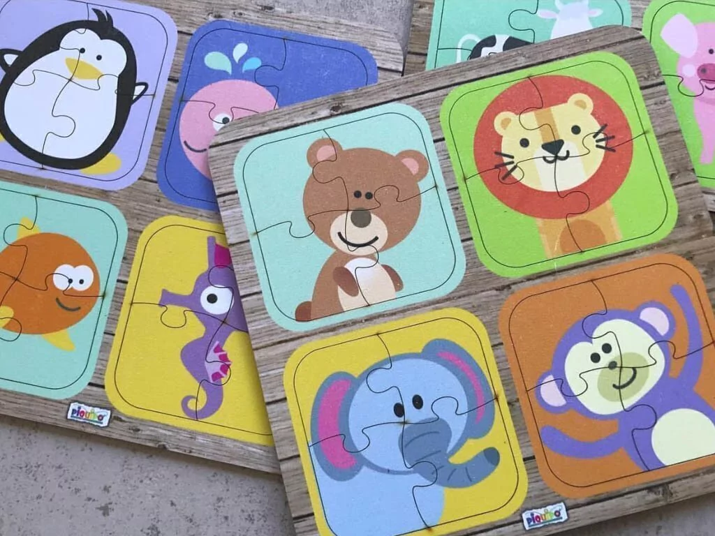 Vienen 4 imagenes de animalitos de 4 piezas cada uno.