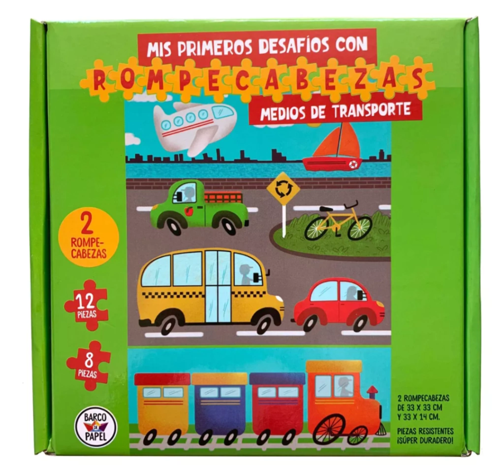 Rompecabezas Mis Primeros Desafíos La GranjaDos rompecabezas de 8 y 12 piezas con imágenes de los distintos medios de transportes, con piezas grandes super resistentes. Ideal para que los mas pequeños puedan comenzar a armar los primeros rompecabezas.Los rompecabezas incrementan la concentración, desarrollan la paciencia, disminuyen el estrés, ejercitan la memoria, estimulan la relajación, enseñan autocontrol y mejoran la autoestima.