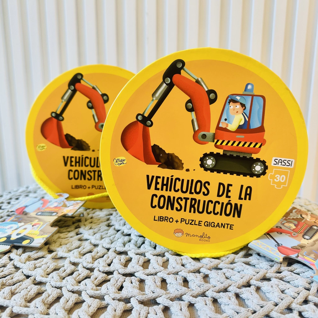 ¡Un libro ilustrado y un rompecabezas gigante para descubrir todos los vehículos en el sitio!