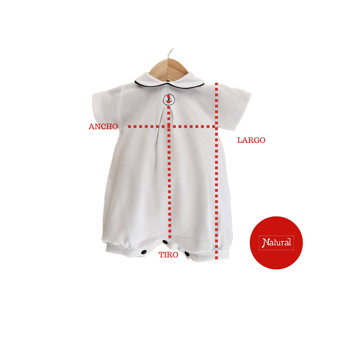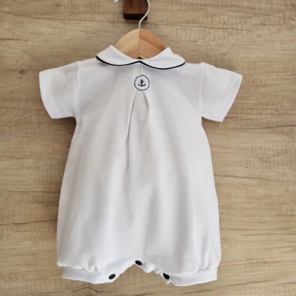 ROMPERS CONFECCIONADO EN TELA DE PIQUE DE PRIMERA CALIDAD, POSEE DETALLE DE BORDADO MARINO, SUPER DELICADO, CUELLO CON DETALLE DE BORDE AZUL, BROCHES AL TONO EN ESPALDA Y ENTREPIERNA PARA FACILITAR EL CAMBIADO. NOS ENCANTA PARA FOTOGRAFIA NEW BORN , NACIMIENTO Ó BAUTISMO.