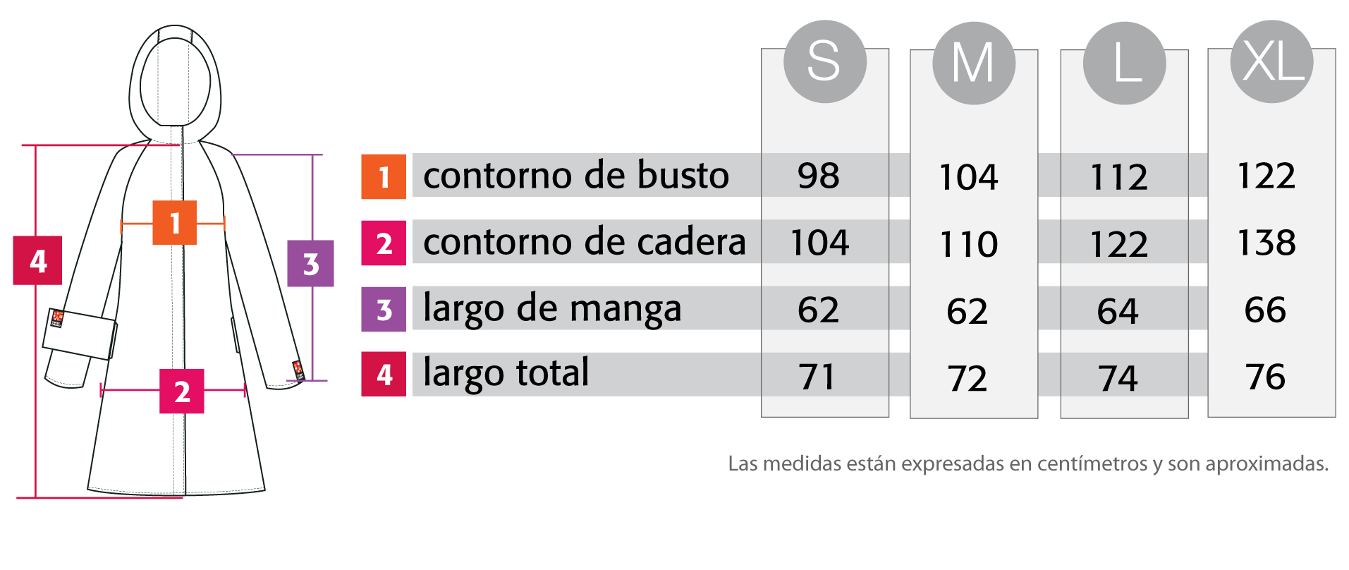 Tomate las medidas de tu cuerpo, con ropa, y sumale 5 cm. más como mínimo. Si preferís usarlo bien cómodo y holgado, sugerimos que sumes 10 cm. a las medidas de tu cuerpo.