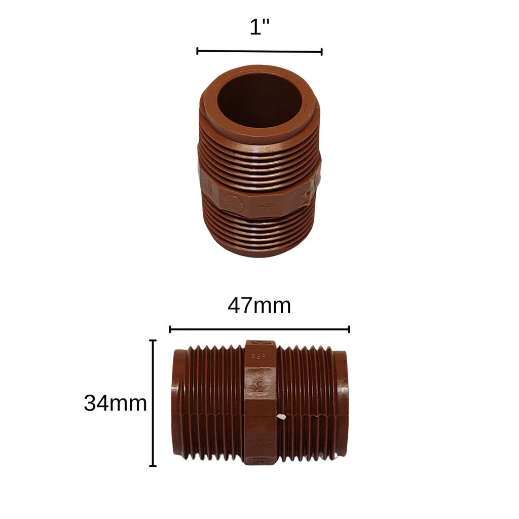 Características- Marca: IPS.- Línea: Roscado polipropileno PPN.- Diámetro: 1".- Articulo: Rosca con tuerca 1".- Ambos extremos rosca macho 1".- Maxima seguridad en las uniones.- Fabricado con Polipropileno Homopolimero 100% Virgen.- Aprobado bajo Normas IRAM.- Unión por rosca, hermeticidad en todo el sistema.- Excepcionales ventajas en la instalación.- No precisa pegar, ni adhesivo.- Mayor resistencia a los impactos.- Excelente resistencia a alta presión y temperaturas.- Ligereza y facilidad de montaje.- Baja conductividad termica.- Garantía escrita por 50 Años.
