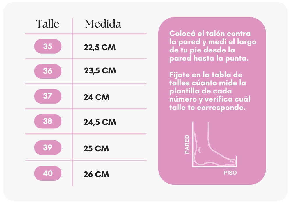 TABLA DE MEDIDAS SEGUN LA MEDIDA DE TU PIE :