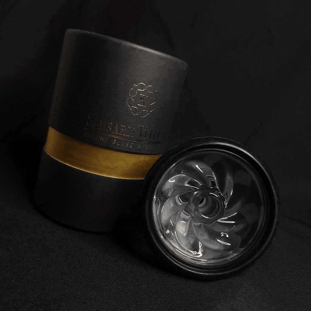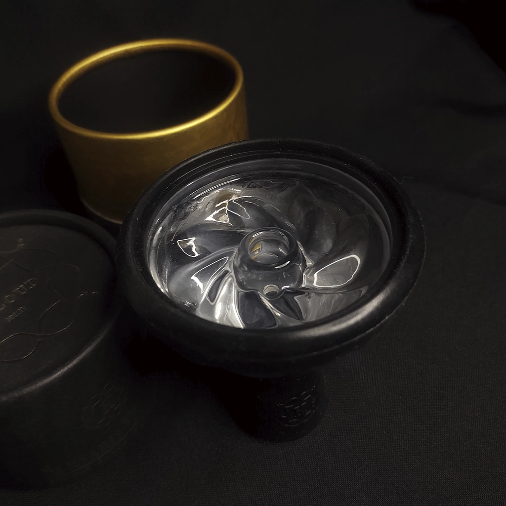 Cabezal premium para narguile, de silicona negra por fuera y vidrio por dentro.