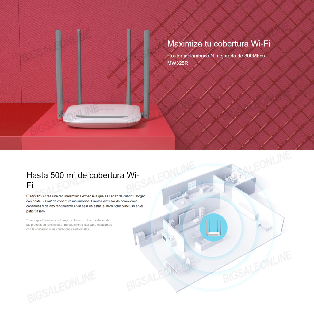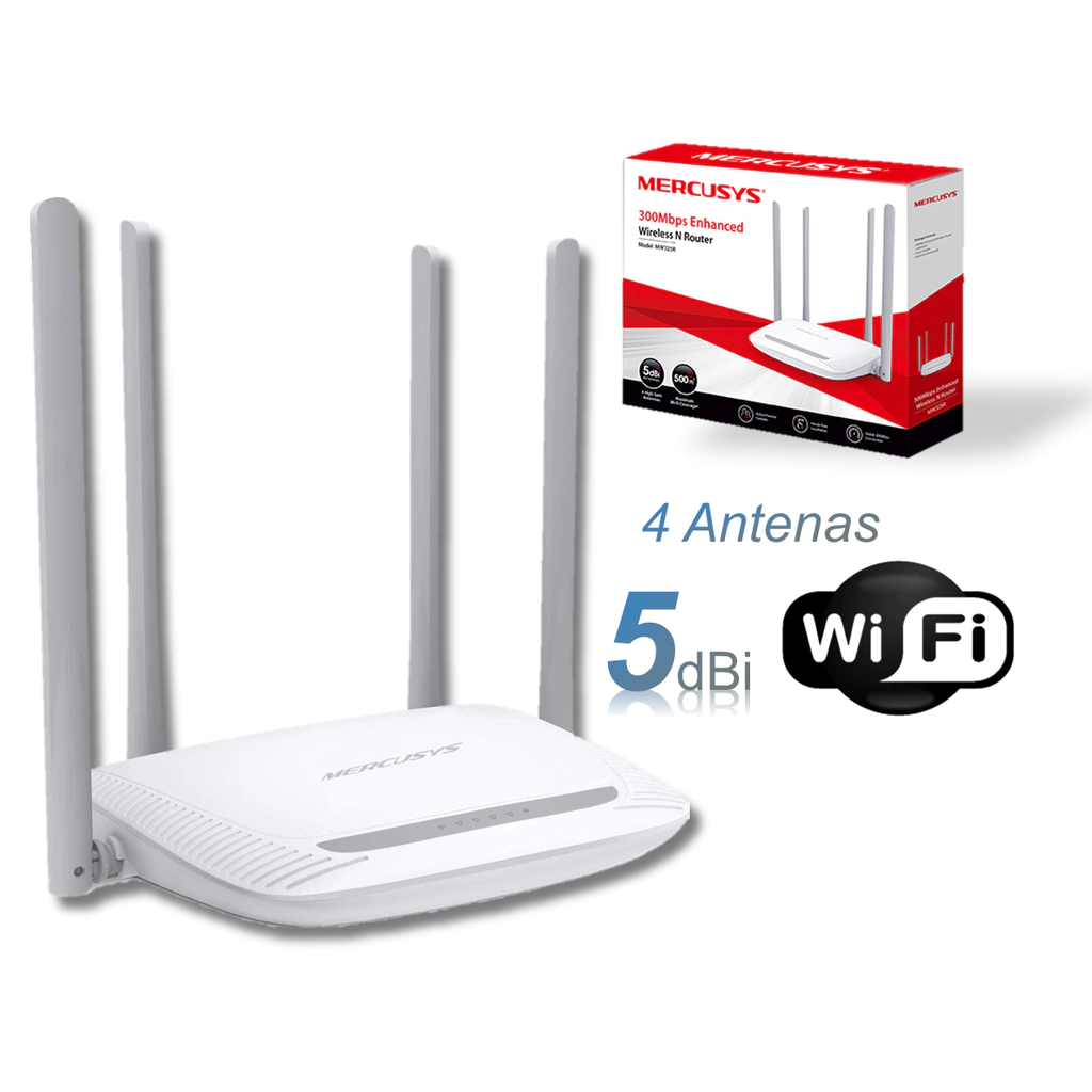 ¡¡¡ TENEMOS STOCK DE ESTE ARTÍCULO!!!ROUTER WIFI MERCUSYS DE 300 MBPS CON 4 ANTENAS* Si lo que quieres es darle wifi a otras zonas de tu casa solo tendrás que sacar un cable de red del Router principal y luego conectarlo a este Router y así te permitirá obtener una excelente señal wifi. sin interrupciones.* Ideal para streaming HD, juegos en línea y descargas de archivos grandes.* Es de muy fácil configuración y conexión* Más antenas, mejor señal; Con este equipo, las paredes y techos no son un obstáculo: los múltiples receptores garantizan un mejor rendimiento en lugares con gran nivel de interferencia.* Internet en todos lados; Con una banda de 2.4 Hz, el alcance de la señal será óptimo para que puedas utilizar tus aparatos electrónicos en cualquier parte de tu casa o de la oficina.Estamos para atender todas tus dudas!