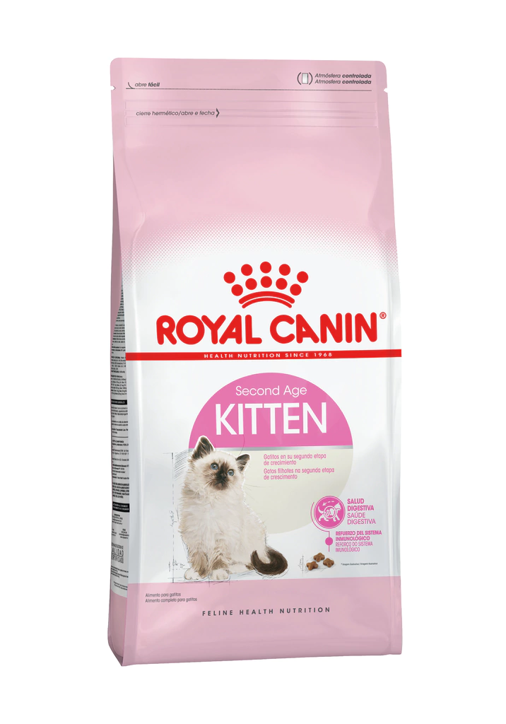 Alimento para gatos, especial para gatitos en su segunda etapa de crecimiento. Desde los 4 hasta los 12 meses de edad.Beneficios:Salud digestivaTolerancia digestiva reforzada gracias a proteínas altamente digestibles (L.I.P.*) y prebióticos (incluyendo FOS). *Proteínas seleccionadas por su elevada digestibilidad.Refuerzo del sistema inmunológicoDurante este período clave, el sistema inmunológico del gatito se desarrolla progresivamente. Kitten ayuda a reforzar las defensas naturales del gatito en su segunda etapa de crecimiento, gracias en particular a un complejo patentado de antioxidantes, que incluye vitamina E.Crecimiento saludableContenido adaptado de proteínas, vitaminas y minerales incluyendo vitamina D y calcio. Elevado contenido energético para adaptarse a este período de crecimiento intenso.