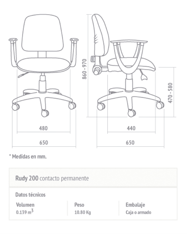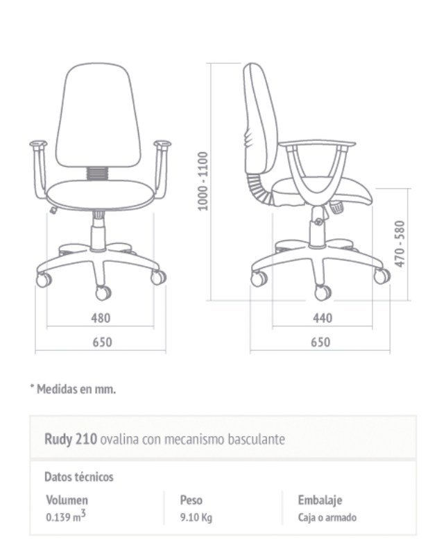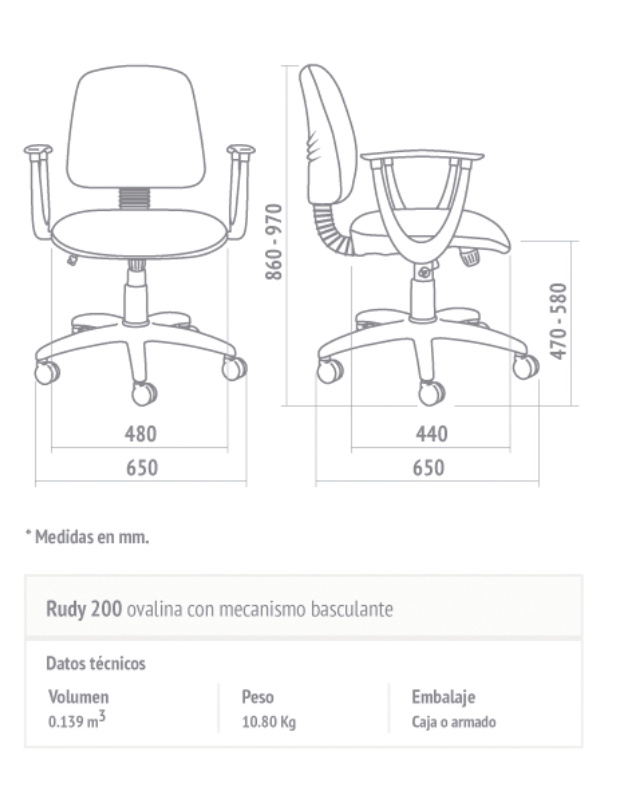 Opcionales: Apoyabrazos / Base cromada / Base plástica con alma de acero / Kit apoyapies