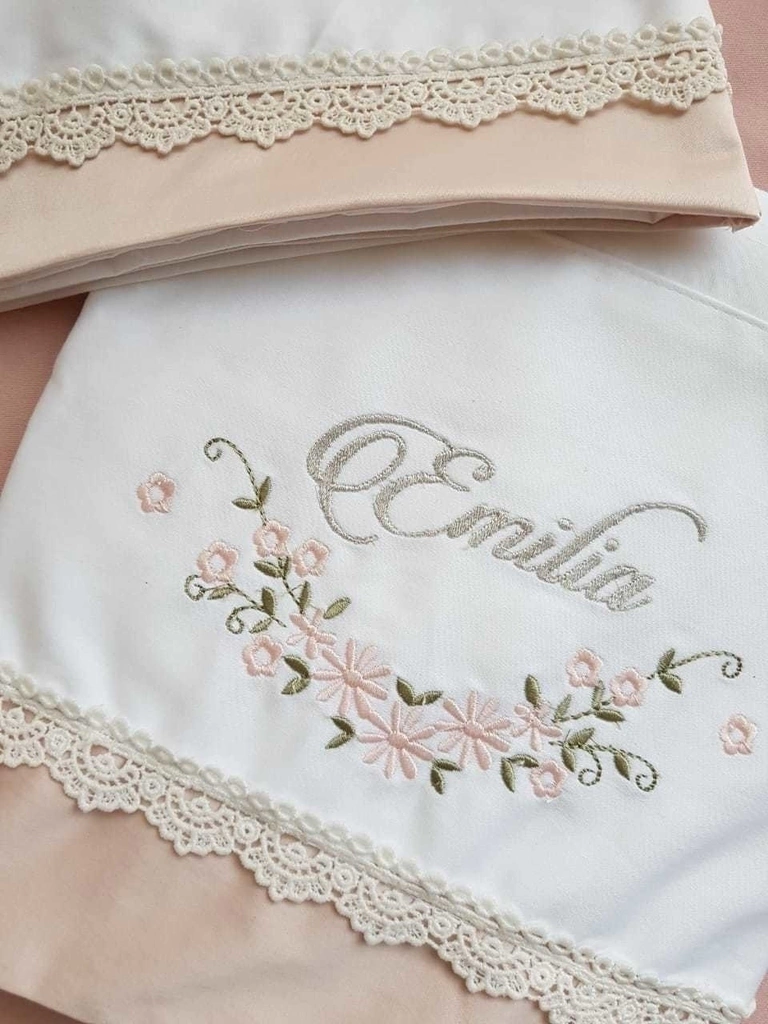 ❤ INCLUYE: 1 sábana ajustable lisa + 1 sábana superior con endoso personalizado + 1 funda de almohada.