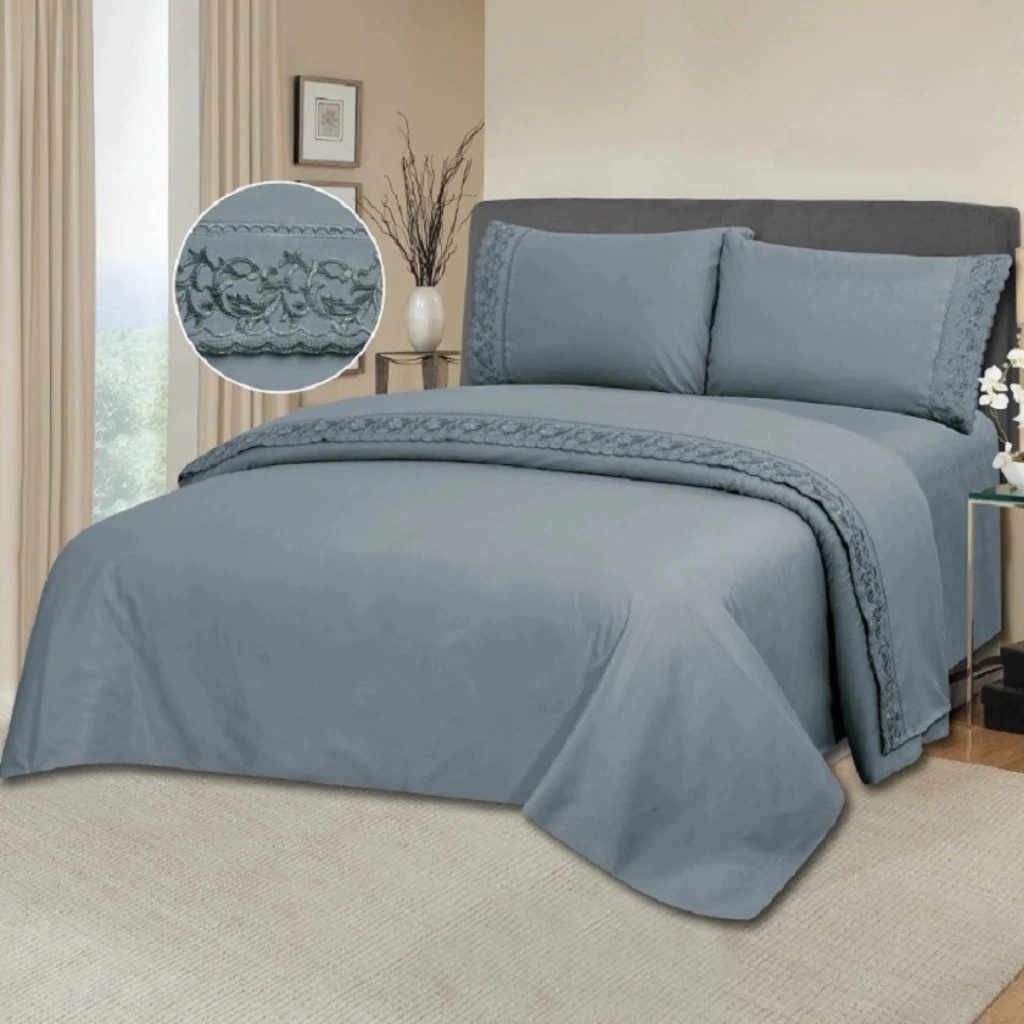 Sabanas Broderie Love And Home King Size100 % PoliesterContiene 4 piezas1 ajustable : 2x2x40 - 1 Superior 280x280cm - 2 Fundas 60x90Para colchones de 2x2x40