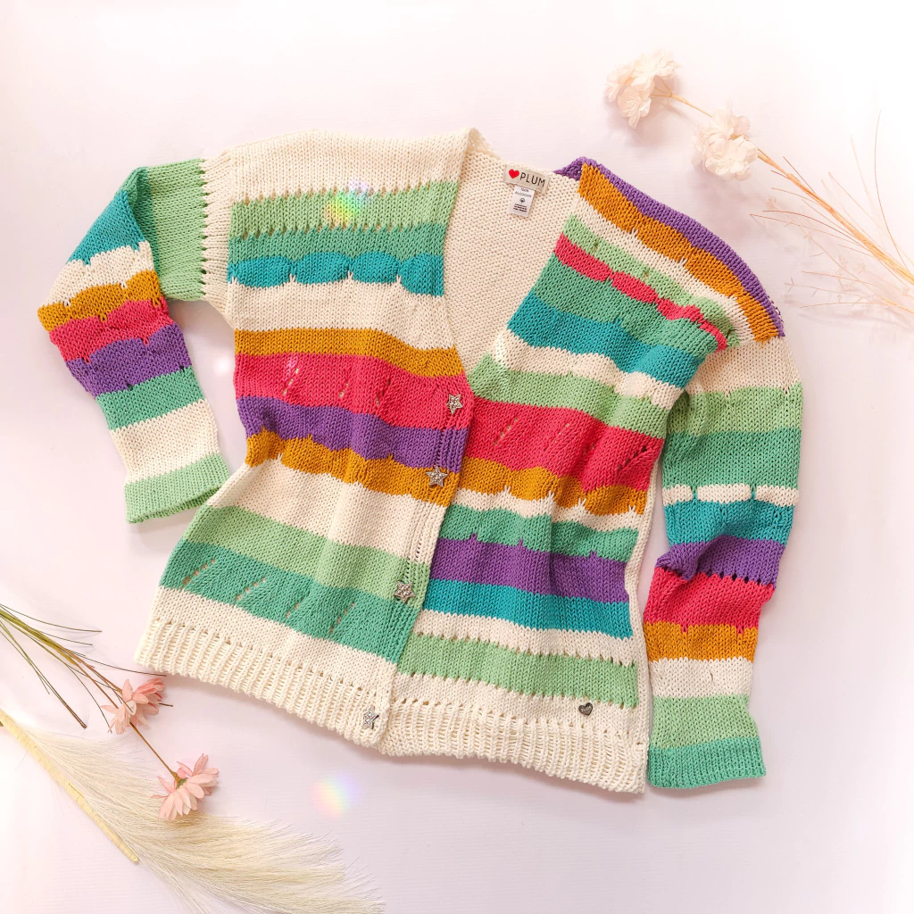 Un toque de arte y color para tu guardarropa.Estesaco está tejido de forma manualconrayas y caladosque lo hacen único, tiene uncuello en Vymangas desplazadas.Losbotones metálicos plateadosen forma de estrella son un detalle que enamora. Las rayas son un poco distintas en cada saco porque son piezas artesanales únicas.Composición: 100% algodón.Recuerda que cada pieza es única, con pequeñas irregularidades que resaltan suartesanía.Medidas aproximadas tomadas sobre una superficie planaTalle S-MAncho de axila a axila: 48 cmLargo: 50 cmLargo de mangas del puño al cuello: 65cmTalle L-XLAncho de axila a axila: 50 cmLargo: 58 cmLargo de mangas del puño al cuello: 69 cmTalle XXLA PEDIDO TARDA 20 DÍAS APROXAncho de axila a axila: 58 cmLargo: 68 cmLargo de mangas del puño al cuello: 71 cmLa persona de la foto está usando el talle L-XL y mide 1.65, 95 de busto y 105 de caderas.Los colores pueden variar levemente por cuestiones de disponibilidad de stock, y variaciones en las pantallas en donde se vean las imagenes.*Te dejo por acá las propiedades del algodón que hacen que sea una fibra que amamos:Tiene alta higroscopicidad, que es la capacidad de absorber la humedad, propiedad por la cual puede absorber la transpiración pero sin que se sienta húmeda la tela contra la piel, lo cual nos protege la piel y nos da comodidad.Tiene buenas características de protección térmica debido a la estructura hueca de la fibra, esto es tanto para el frío como para el calor.Es retardante de llamaEs sensible a la actividad de los microorganismos (se pudre), por lo cual es una fibra biodegradable.CuidadosLavar en lavarropas en ciclo de lana o lavado a mano, NO DEJAR EN REMOJO PORQUE LOS COLORES FUERTES PUEDEN DESTEÑIR ARRUINANDO LA PRENDA. Usar suavizante para telas en el enjuague o un chorrito de vinagre blanco para conservar los colores fuertes mas tiempo. Al ser puro algodón puede tomar al secarse, por lo cual te recomiendo que al sacarlo del lavarropas húmedo, lo estires y le des forma sobre una superficie plana y de ser posible lo dejes secar ahí. Mientras menos lo laves, mejor. Para combatir olores, colgarlo un rato afuera funciona muy bien, y si tiene manchas puntuales lavar las manchas con agua y jabon blanco y un cepillito. Es una prenda artesanal hecha con mucho amor, cuidala y te va a acompañar muchos años.Este producto ha sido tejido de forma manual y artesanal, lo que significa que puede haber cierta irregularidad en la textura debido a la naturaleza del proceso de tejido. Sin embargo, esta irregularidad no se considera un defecto del producto, sino más bien una característica única que lo distingue de los productos producidos en masa.Además, el color del producto puede variar ligeramente debido a las diferencias en las partidas de tinte utilizadas en la producción y a las variaciones en la configuración del color en los diferentes dispositivos de visualización. A pesar de que se hacen esfuerzos para que las fotos sean lo más fieles posibles a la realidad, es posible que el producto no se vea exactamente como se muestra en la imagen.