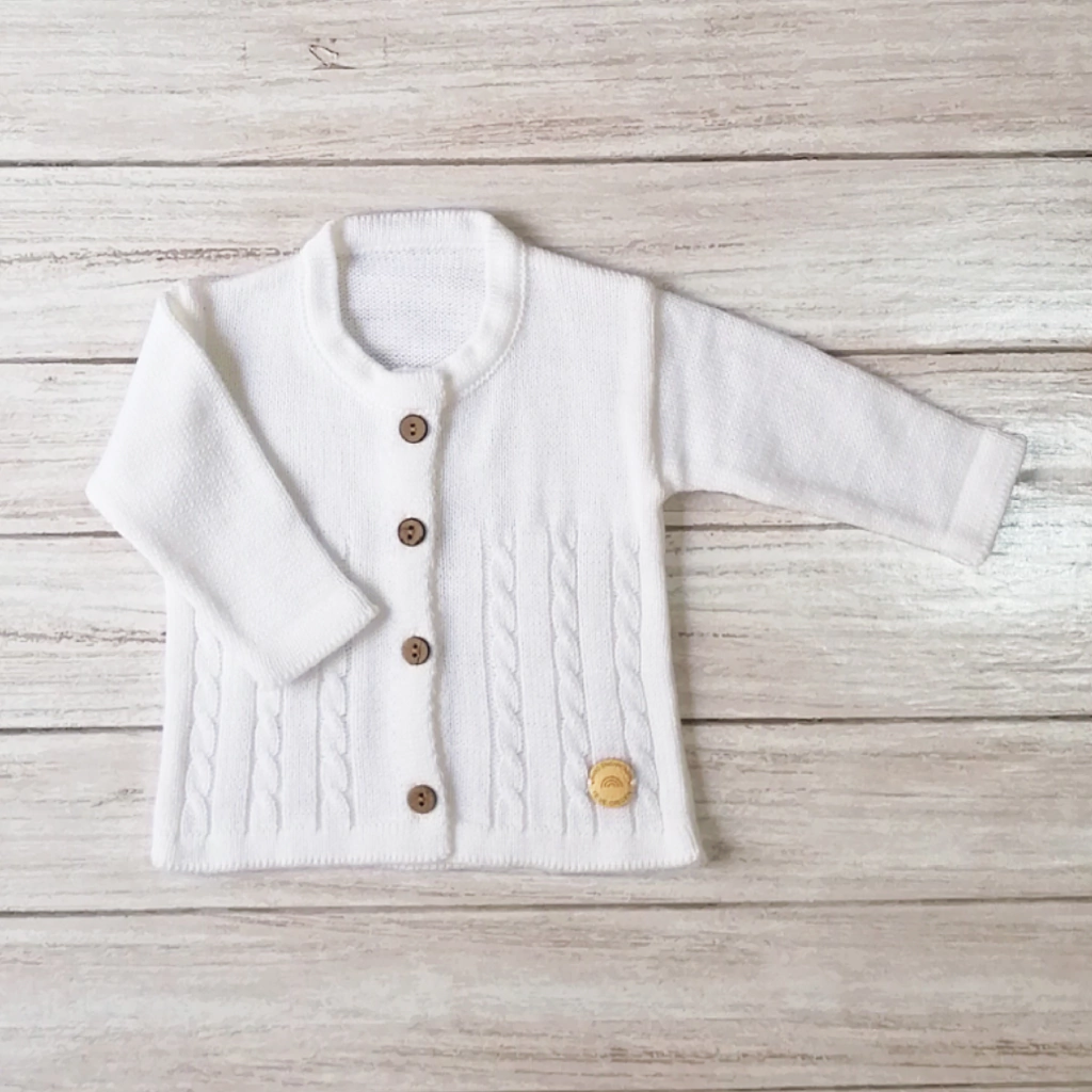 saquito tejido con Lana acrílica,es 100% hipoalergénica, súper suaves y livianitos.