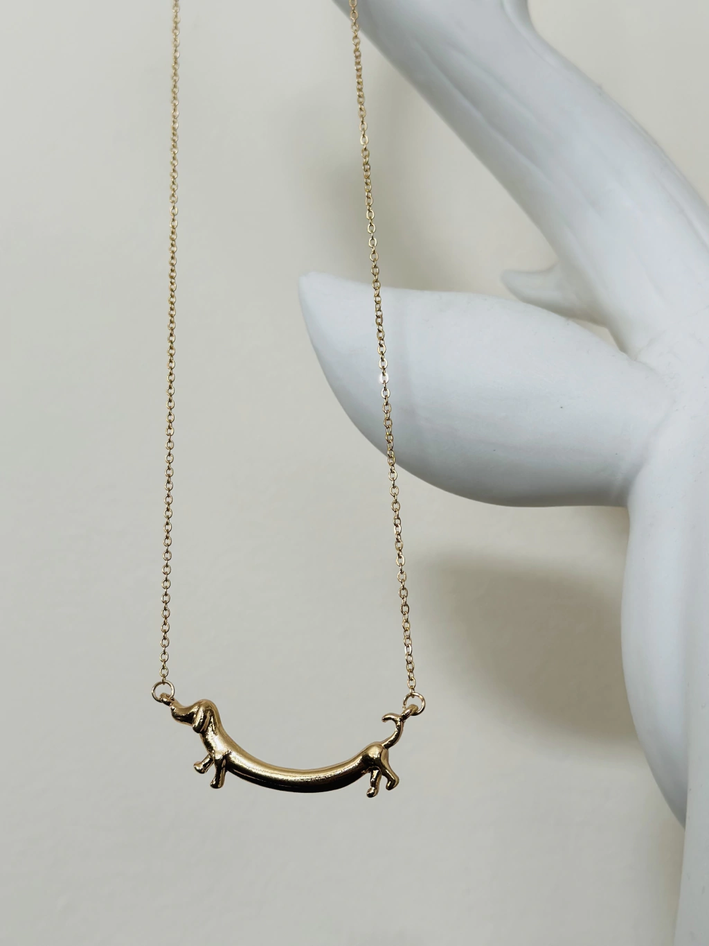 Largo del collar: 40+ 5cmLargo del salchicha: 5cmCollar chapado en oro de 18 quilates. El material principal es la aleación.NO MOJAR
