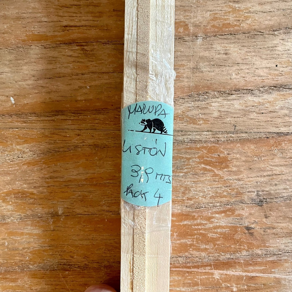 - Pack 4: 3,9 mts listones Marupa de 10 mm / listón más chico 78 cm / listón más largo 79 cm.