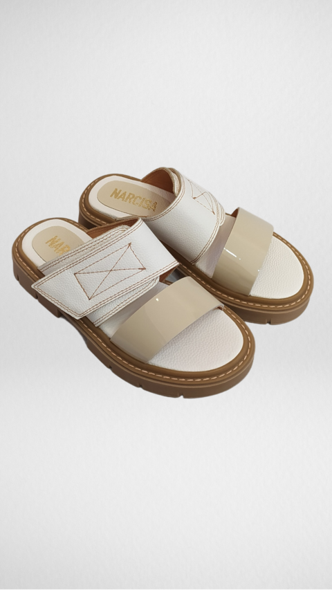 Sandalias tipo zueco de color crudo, ideales para llevar en tu día a día. Este modelito queda hermoso con jeans al tobillo para un look súper relajado.Te cuento sus detalles:Sandalia de cueroTiras anchas de cuero y cuero charolado a tonoDetalle de costura de adorno (no es abrojo ni cierre regulable)Base de goma con detalle de ribete a tono, altura de 3cm aproximadamenteTABLA DE TALLES (corresponde a la medida de la plantilla interna)NumeraciónCentímetros3523.536243724.538253925.54026