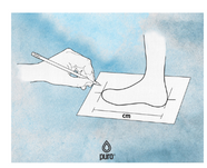 Medí el LARGO de la silueta desde el talón hasta el dedo más largo, la parte horizontal más amplia te dará el ANCHO