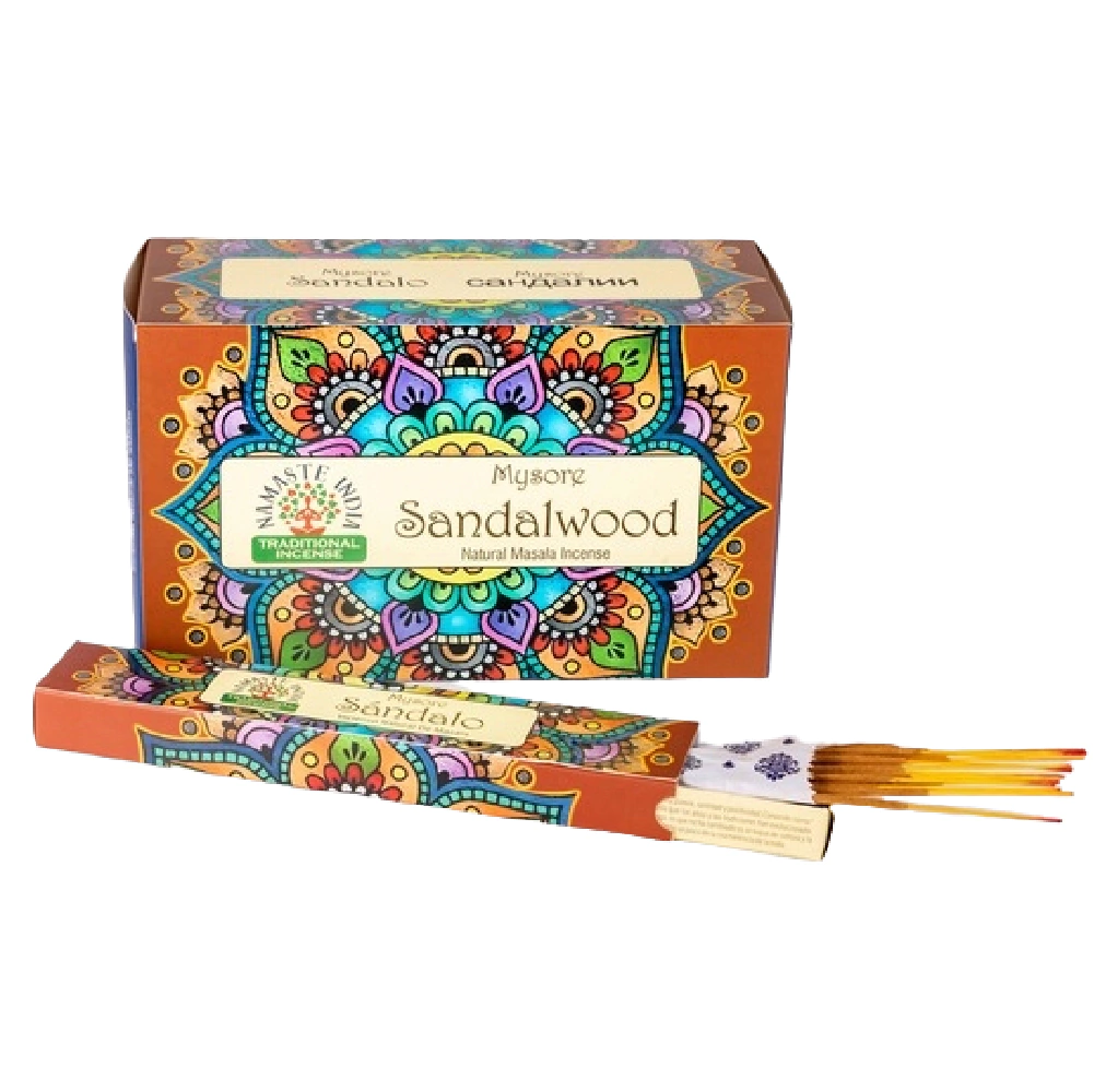 Sahumerio SANDALWOOD - NAMASTE INDIA: Contiene 12 cajas.