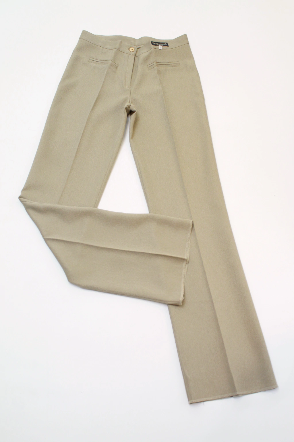 Pantalón sastrero beige, de tela texturada liviana, semioxford, rígido, tiro medio, talle 38 aprox (en etiqueta dice talle 3), NUEVO, fabricado en los años 90s.