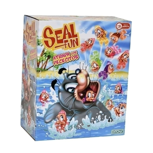 Atrapa tantos peces como puedas para gana. Desafía a un amigo. ¡Cuidado! Los peces saltan por todos lados. Contiene 1 foca a batería, 2 sets de pesca, 2 anillos plásticos, 2 redes, 1 manga plástica, 2 aletas de foca, 30 pececitos de colores, 1 plancha de stikers e instructivos. Para jugar de a dos.