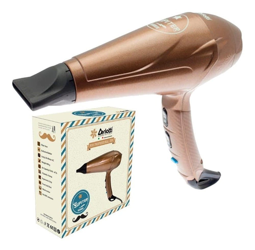 CARACTERÍSTICAS PRINCIPALES: -MODELO: W757 Secador De Pelo Ceriotti Jupiter Barber -MADE IN: italy -POTENCIA: 2000 Watts -MOTOR: AC DESMO K 16N -VOLTAJE: 220-240 V -TEMPERATURA: 125° -CAPACIDAD DE AIRE: 75/95 - m3/h -PESO: 490 g. aprox. -CABLE: 2,5 mts aprox. - FUNCIÓN SHOCK DE FRÍO: SI -DIMENSIONES DEL EMBALAJE: 23 cm X 24 cm. - DIMENSIONES DEL SECADOR COMPLETAS: -LARGO: 22,5 cm -ALTO: 26,5 cm -DIÁMETRO DE LA BOQUILLA: 3,5 cm -BOQUILLAS: 2 /4 cm -ACLARACIONES: Secador de cabello dedicado y diseñado para el mundo del barbero. Cuando se usa en modo “Barber”, el aire y la temperatura están perfectamente calibrados para manejar y respetar barba y bigote. En el uso normal, usted puede encontrar el funcionamiento profesional típico de los secadores de Ceriotti. El diseño y el color “bronce” dan a su salón un toque personal y profesional. -COLORES DISPONIBLES: DORADO