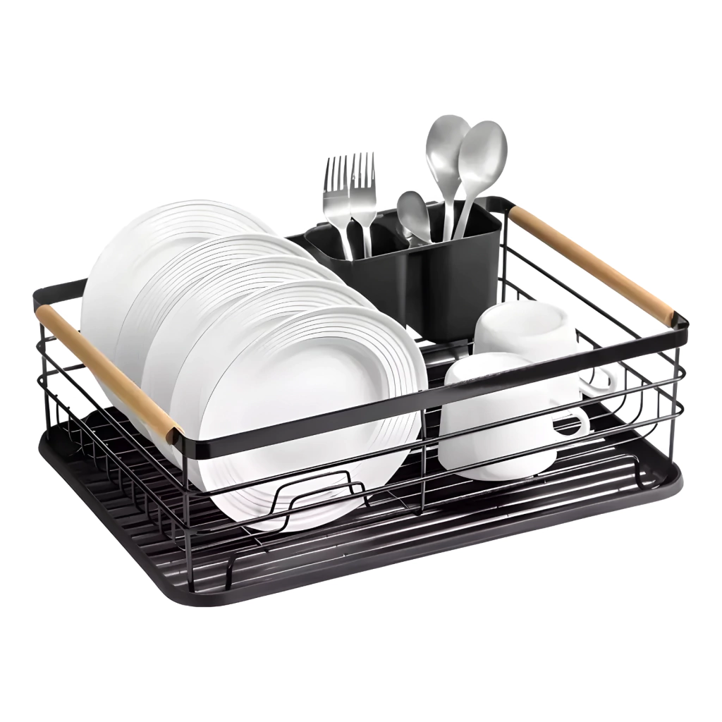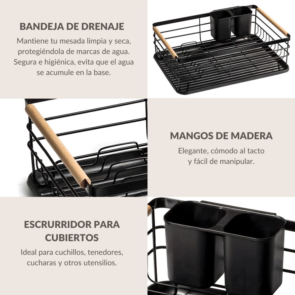 Este secaplatos combina la resistencia del acero con la calidez de la madera, creando una pieza elegante y funcional para tu cocina.