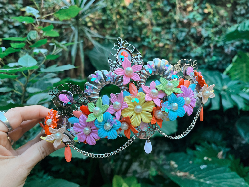 Me quedé muy inspirada con los looks de la Met Gala 2024 y cree esta corona súper mágica. Flores, flores y más flores de muchos colores.
